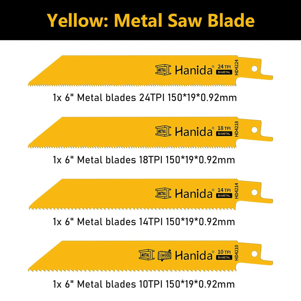 • ★ 【 Reciprocating Saw Blade Dismantle Kit】 - Hanida reciprocating saw blades are suitable for most brands of reciprocating saw tools, such as Milwaukee serrated saws, DeWalt, Bosch, Makita, Black&Decker, Porter Cable, Skil, Ryobi, Hitachi, Metabo, etc.
