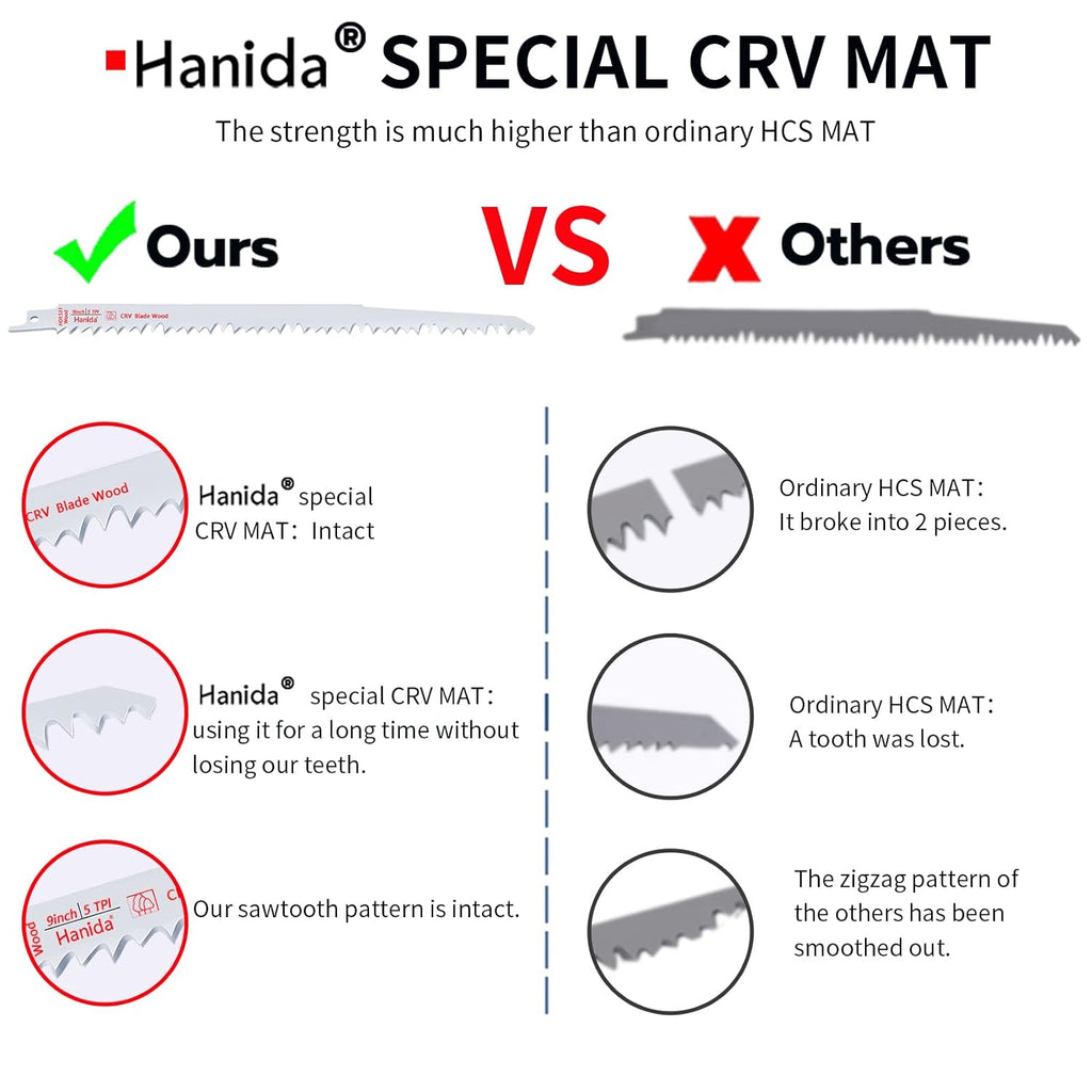 - ★ 【Universal Handle】- Hanida pruning blades are suitable for all brands of reciprocating saw tools, such as Milwaukee serrated saws, DeWalt, Bosch, Makita, Black&Decker, Porter Cable, Skil, Ryobi, Hitachi, Metabo, etc.
