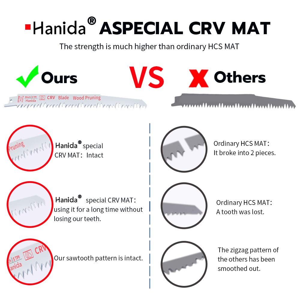 12 Inch 1-Pack, 9 Inch 4-Pack, 8 Inch 3-Pack and 6 Inch 7-Pack Wood Pruning Reciprocating Saw Blade, CRV Sawzall Blades Pruner Saw Blades - 15 Pack